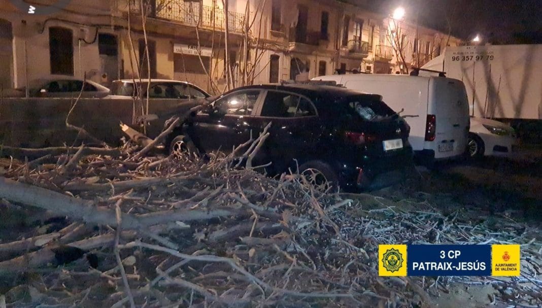 Durante la madrugada se han registrado rachas de viento muy fuerte con máximas de 87 km/h en el aeropuerto de Valencia; 83 en Bétera y Segorbe; Fredes, 81; Jalance, 80; Llíria, 75; Villena, 75; Aeropuerto Alicante-Elche y Castelló de la Plana, 74; Morella, 73; Alcoi, Bicorp y Montanejos, 71; Rojales, 69 y València ciudad, 62, según Aemet.