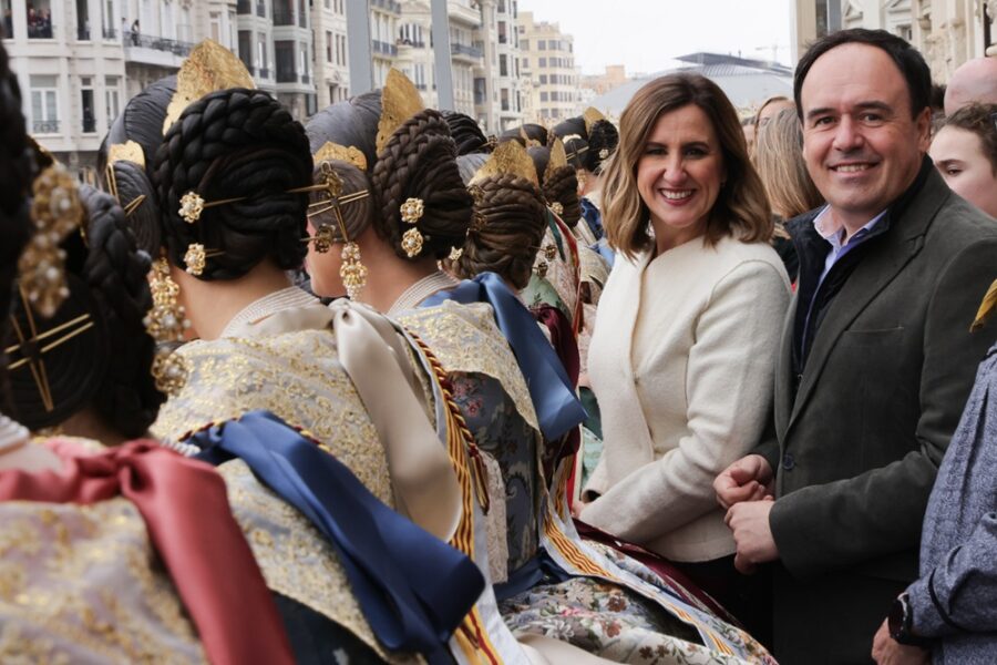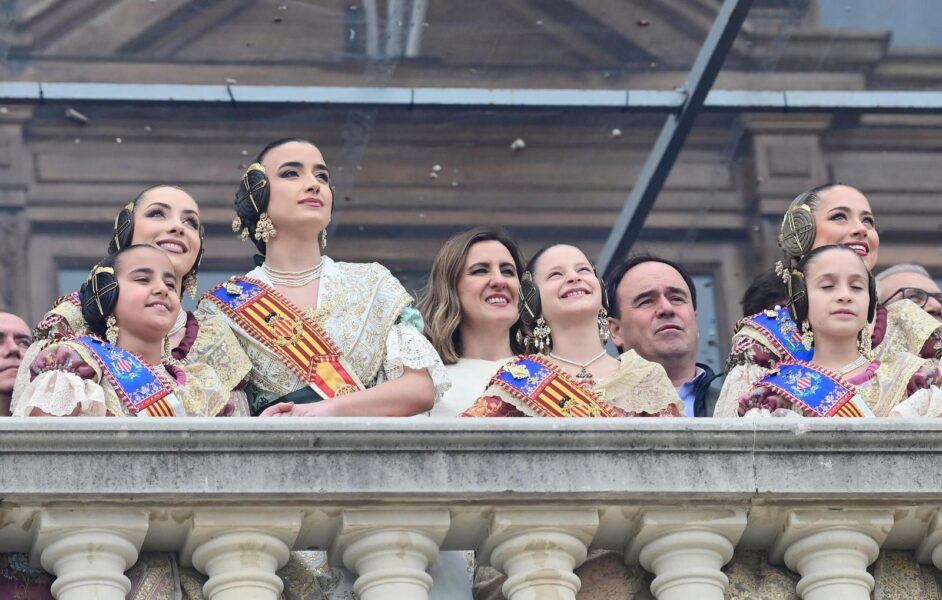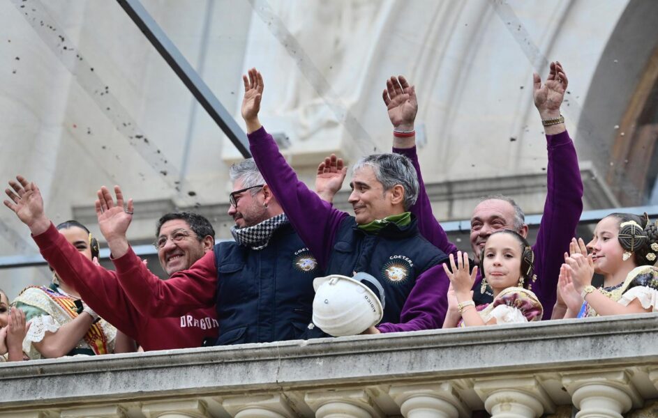 Entre los invitados del balcón municipal han destacado el president de la Generalitat Valenciana, Juanfran Pérez Llorca, la actriz María Barranco, el músico José Manuel Casañ, cantante y líder del grupo valenciano Seguridad Social, y la deportista Mireia Cabañes, subcampeona del mundo de surf adaptado.