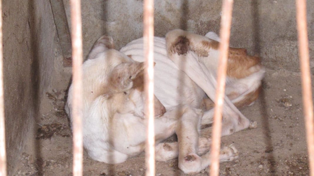 En el interior de la instalación, se observan cuatro canes de raza podenco, de los cuales hay dos canes fallecidos y los otros dos se encuentran vivos, pero en muy mal estado higiénico-sanitario.