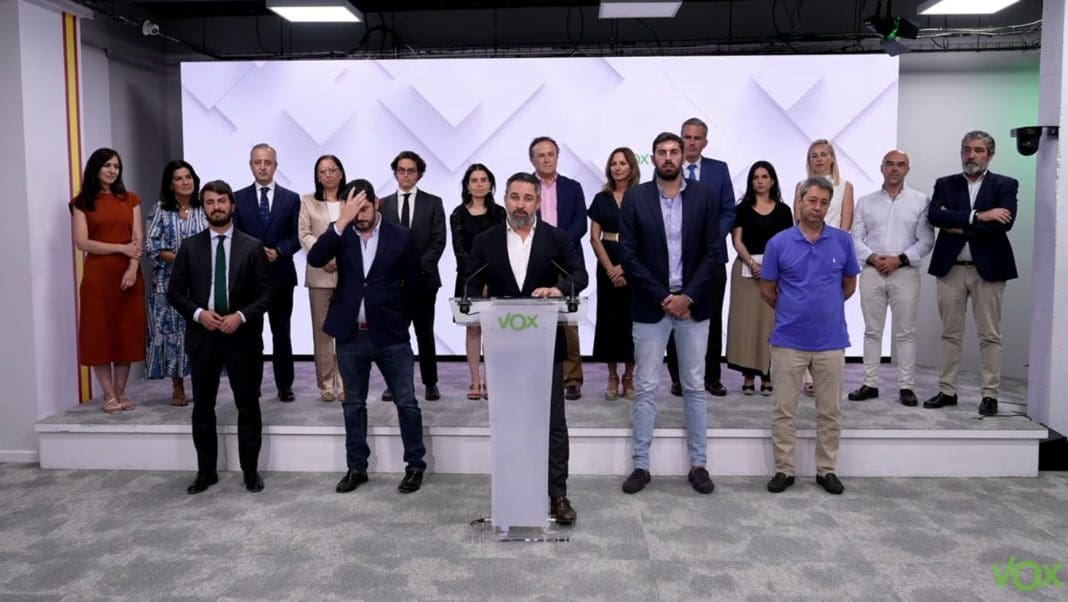 Santiago Abascal ha declarado ante los medios hora y media más tarde de lo previsto. En una declaración acompañado de todos sus afines. Ha anunciado que iba a realizar uno de los comunicados más importantes de su historia.