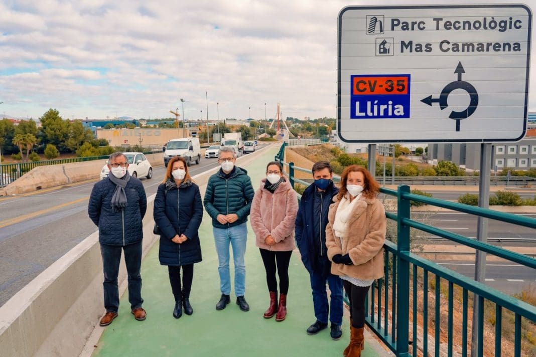 Así, la Conselleria está construyendo un carril ciclopeatonal que, partiendo de la zona urbana industrial al sur del enlace, conecte con el margen opuesto de la CV-35 y, en concreto, con la zona norte del Parque Tecnológico. El nuevo itinerario ciclopeatonal discurrirá sobre la plataforma de la estructura que da acceso al Parque Tecnológico, donde se reducirá la anchura de los carriles destinados al tráfico de vehículos para ampliar la de la acera existente mejorando su funcionalidad. El presupuesto de la actuación es de 420.000 euros.