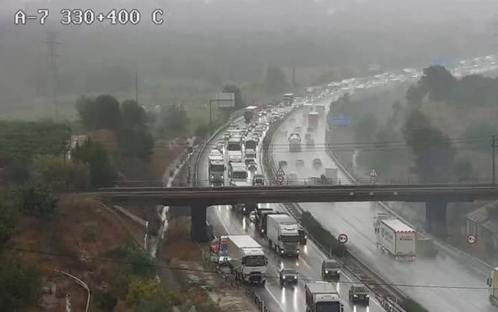 Un accidente de tráfico en el que se han visto implicados un camión y un coche ha colapsado la A-7 a la altura del by-pass de València.