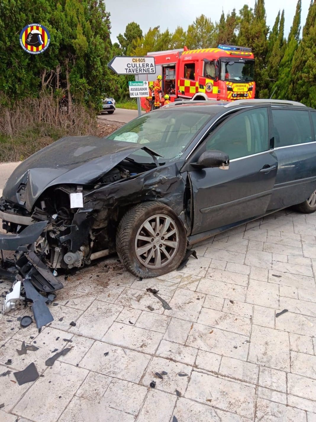 Según informa el Consorcio Provincial de Bomberos, el siniestro se ha producido sobre las 11.00 horas. Los efectivos del parque de Cullera con sargento de Gandia han tenido que liberar a la conductora del turismo.