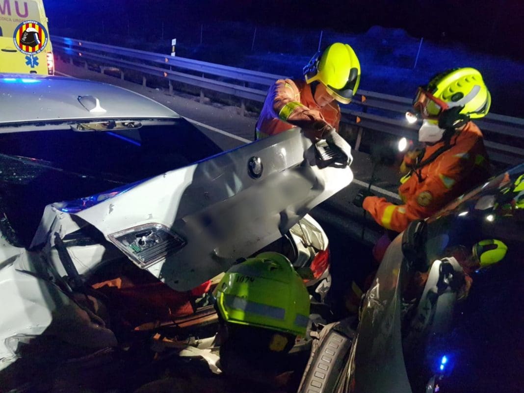 Dos dotaciones de bomberos y sargento de Requena intervinieron anoche a las 21:06 en un accidente múltiple en la A-3 a la altura de Requena, con cinco vehículos implicados.