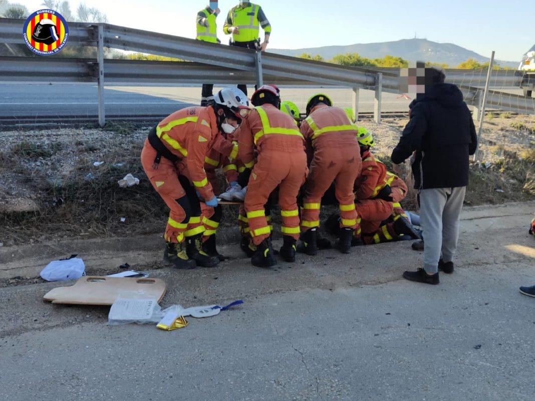 Dos personas han resultad heridas tras caer por un puente mientras circulaban por la AP-7. El Consoricio Provincial de Bomberos ha acudido hasta el lugar para auxiliar a los dos ocupantes.
