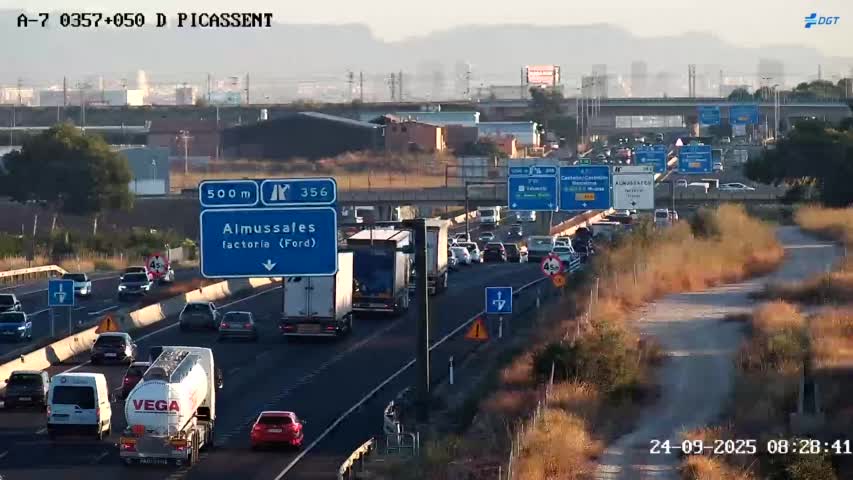 Un accidente en la A-7 en Sagunto en el que se han visto implicados varios vehículos y el tráfico habitual de primera hora en un día laborable provoca retenciones que suman cerca de veinte kilómetros, la mayoría en carreteras de entrada a la ciudad de València.
