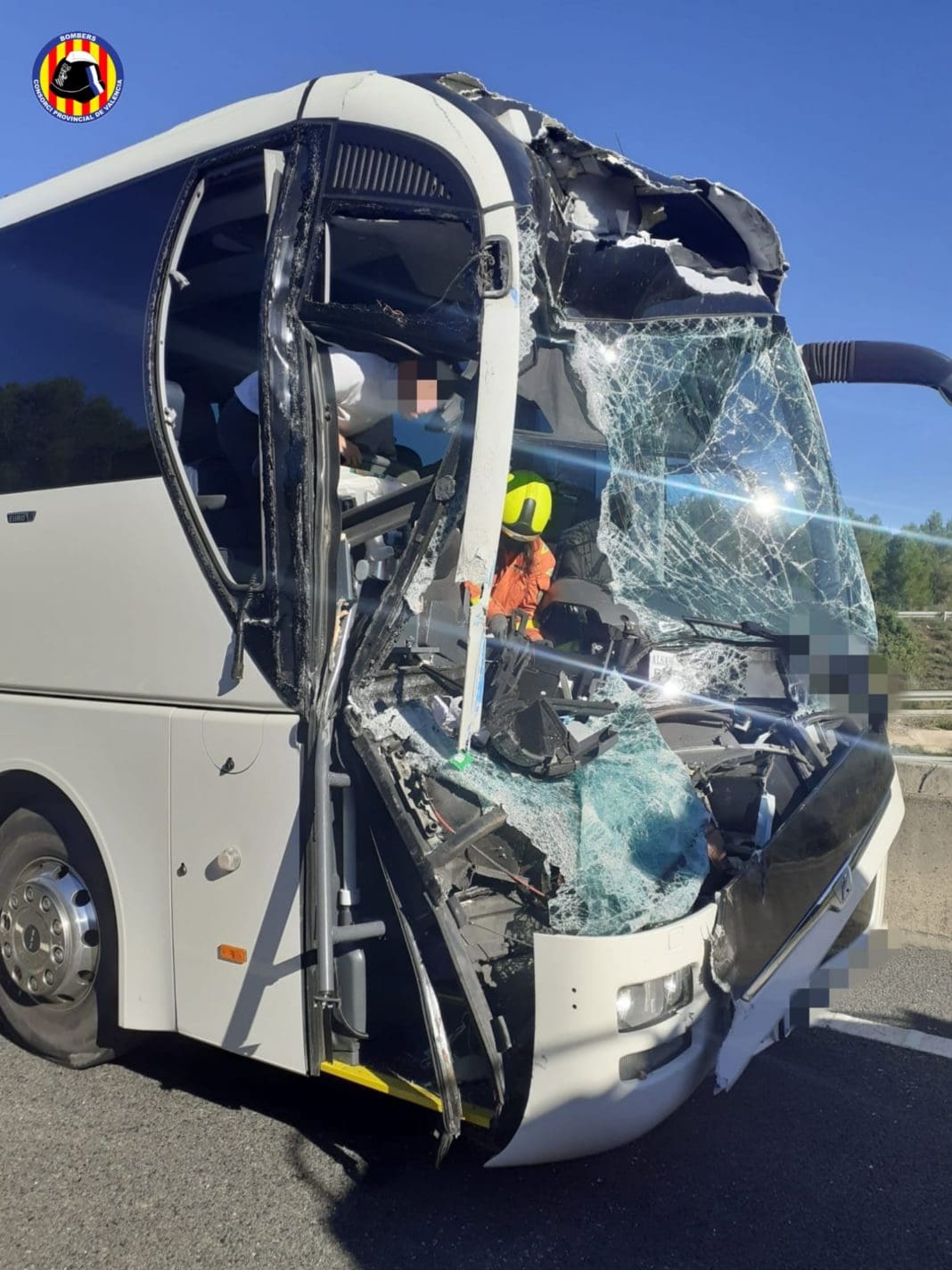 Efectivos del Subsector de Tráfico de la Guardia Civil de Valencia, junto al personal del Servicio de Emergencias, restablecieron el tráfico en la autovía A-7 y colaboraron en las tareas de auxilio a pasajeros tras producirse, a primera hora de la tarde de este viernes, un siniestro vial entre un autobús y un camión.