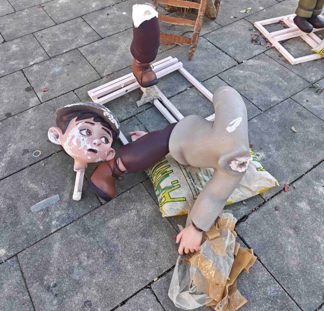 La comisión de la Falla Plaça Prado de Gandia (Valencia), de la Sección Especial, ha denunciado que en la pasada noche de la plantà ha sufrido un acto vandálico que ha provocado roturas y destrozos en varios ninots del monumento principal y el robo de piezas.