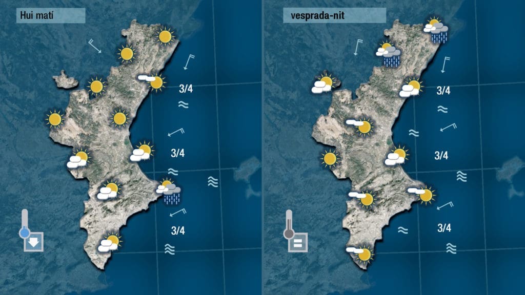 En el tiempo previsto para hoy tenemos que destacar el estado del mar que especialmente a en el sur de València y en Alicante se mantendrá bastante revuelto porque aunque el gregal perderá bastante fuerza, el mar de fondo todavía dejará áreas de marejada y fuerte marejada mar adentro y marejada en la costa.