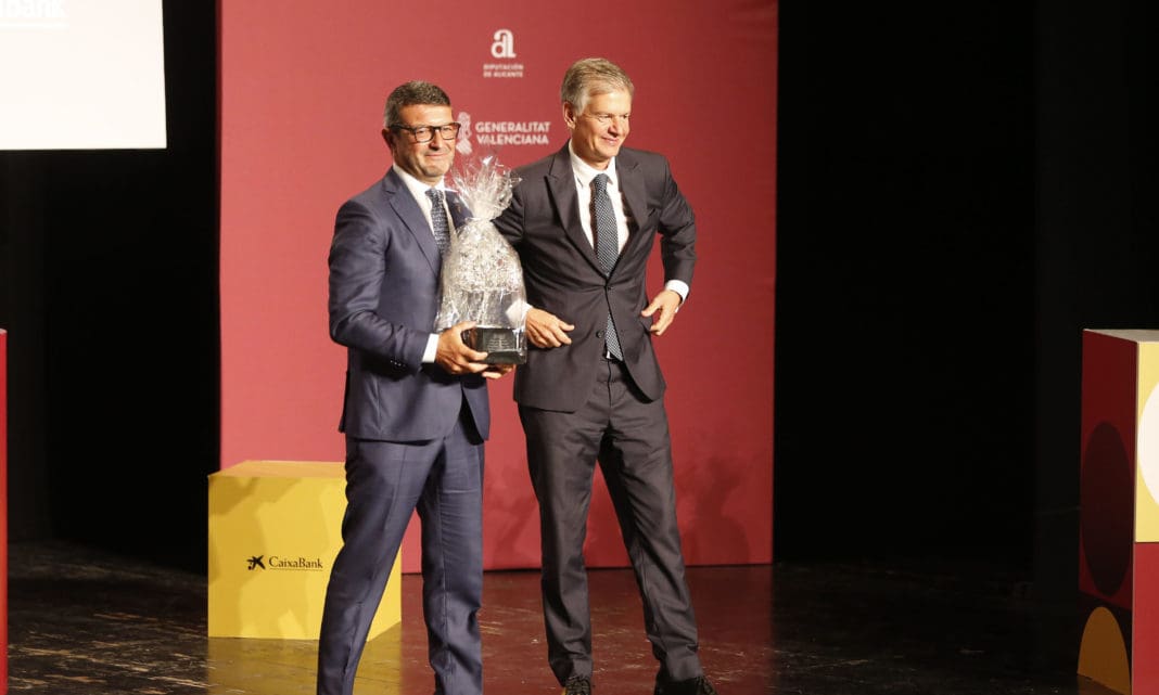 A continuación, ha intervenido el alcalde de Elda, dando paso seguidamente al inicio de la entrega de los galardones de esta vigesimoséptima edición. El Premio CaixaBank ha recaído en la empresa ITC Packaging como muestra de reconocimiento por su innovación, creatividad, reinvención e internacionalización. El empresario Rafael Valls ha recogido el premio de manos del director territorial de CaixaBank en la Comunitat Valenciana, Xicu Costa.