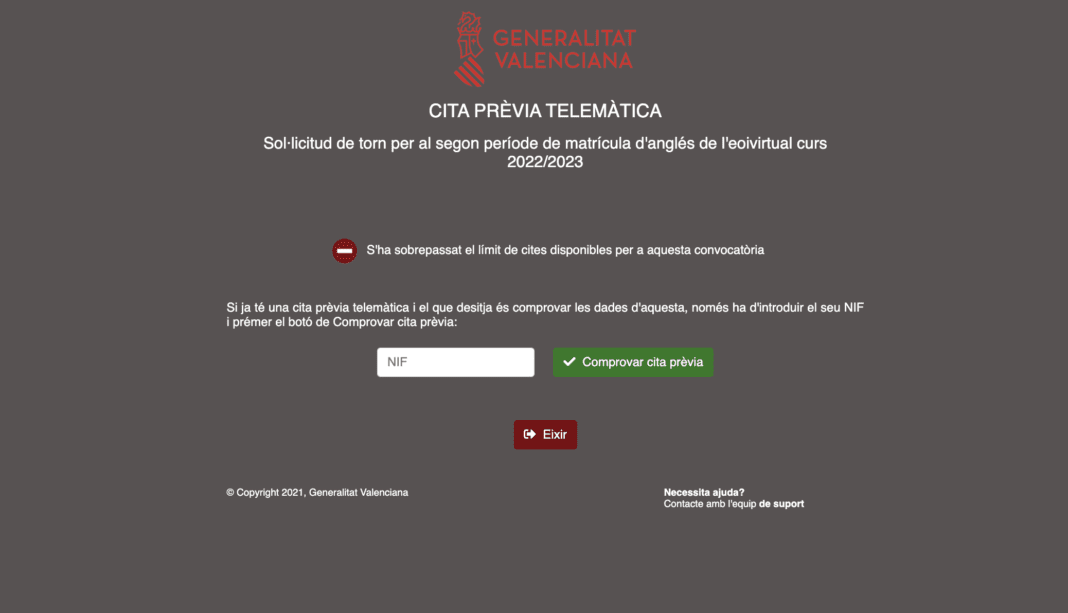 A las 9.00 horas, la Conselleria de Educación ha abierto el plazo para solicitar turno de matrícula para cursar los niveles A2, B1, B2 i C1 de Inglés, hasta agotar los turnos disponibles, hecho que ha sucedido en cuestión de minutos.