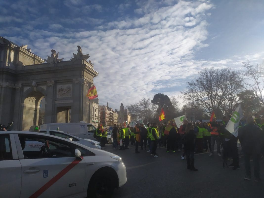 La manifestación tiene inicio en la Puerta de Alcalá hasta la sede del Ministerio de Agricultura, Pesca y Alimentación. Con un recorrido autorizado, los manifestantes han tenido problemas con la policía ya que en ocasiones no les han dejado pasar. Además, los tractoristas se niegan a circular por las calles autorizadas por falta de espacio, mientras, los agentes no les permiten cambiar la ruta.