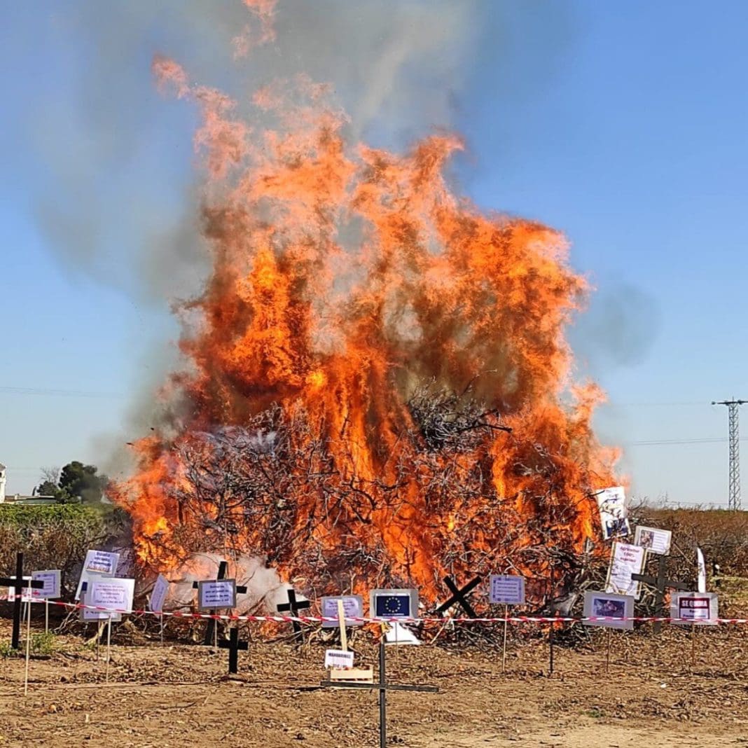 La Asociación Valenciana de Agricultores (AVA-ASAJA) ha convocado esta mañana a los medios a una ‘cremà’ de naranjos arrancados para escenificar la grave crisis de rentabilidad que atraviesan los agricultores y ganaderos valencianos.