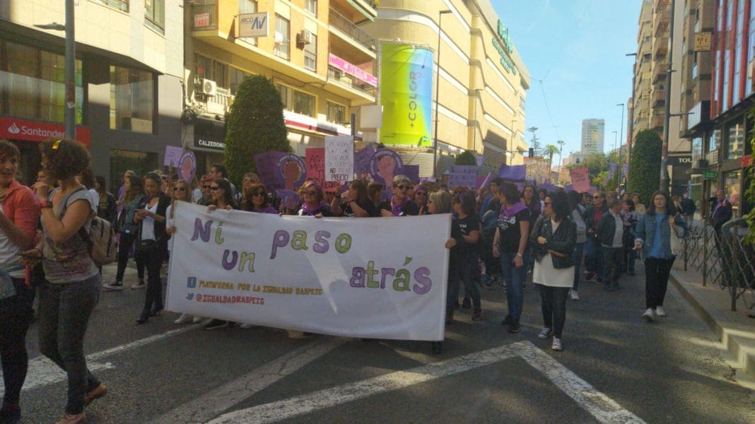 La manifestació iniciava a les 11.00 en Maisonnave i Federico Soto, convocada per l’Assemblea 8M d’Alacant. La manifestació també ha comptat amb el suport dels partits polítics de la localitat, que s’han acostat per a mostrar el seu suport en la lluita per la igualtat.