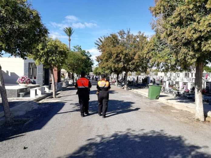 En el dispositiu organitzat per l’Ajuntament d’Alacant intervenen durant tota la setmana més de dos-cents agents de la Policia Local i quaranta voluntaris de Protecció Civil que també patrullen amb bicicleta per l’interior del Cementeri per a vetlar per la seguretat i protecció dels alacantins que s’han desplaçat al cementeri.