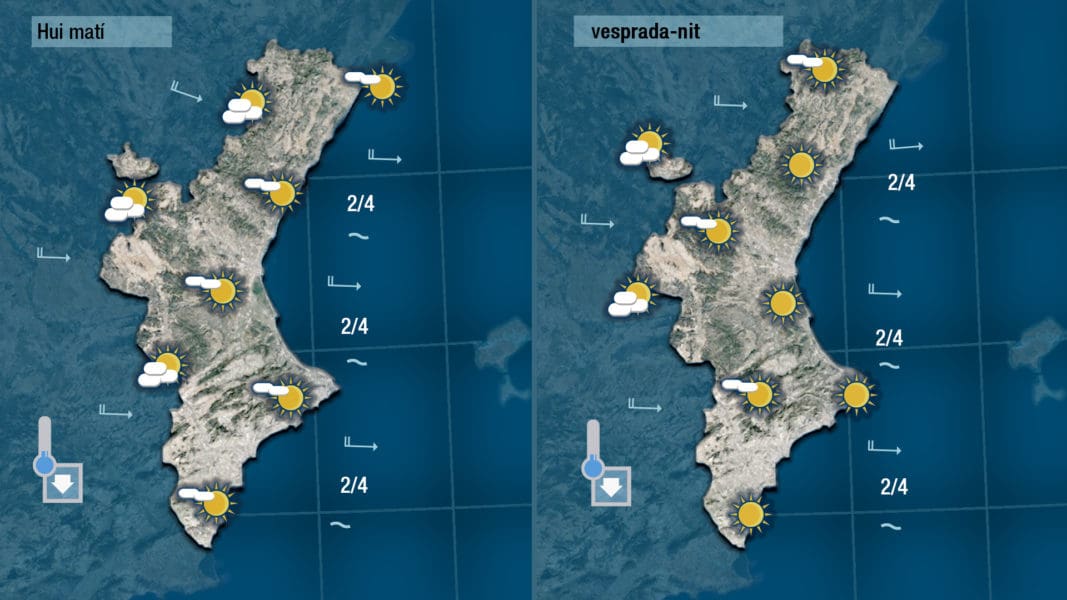 Pero dicen que lo bueno dura poco y hoy volvemos a tener ponientes, pocas nubes al cielo y temperaturas altas aunque acaban quedando un par de grados más bajas que las de ayer.