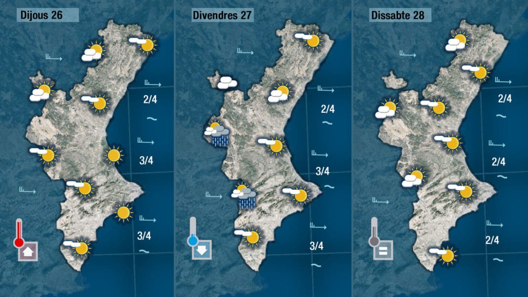 Jueves será el día de más calor de la semana con máximas tocando los 30 grados a la costa, y aunque viernes puede refrescar un poco continuamos sin poder anunciar cambios de tiempo.