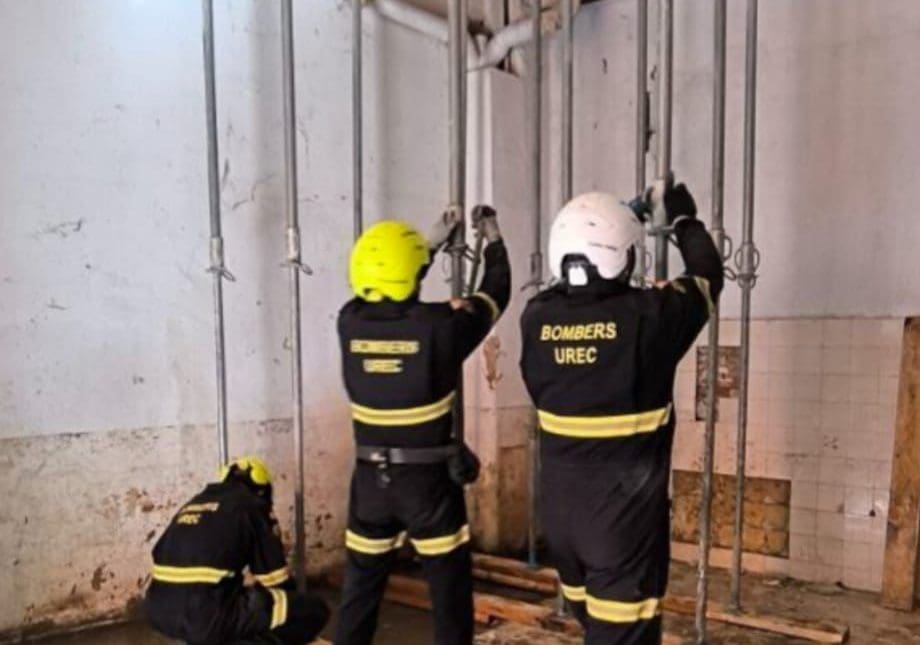 Los especialistas de la Unidad de la UREC han apuntalado de manera urgente un forjado ya que se ha detectado que este, situado en la primera planta del edificio podía ceder y provocar un derrumbamiento en la planta baja.