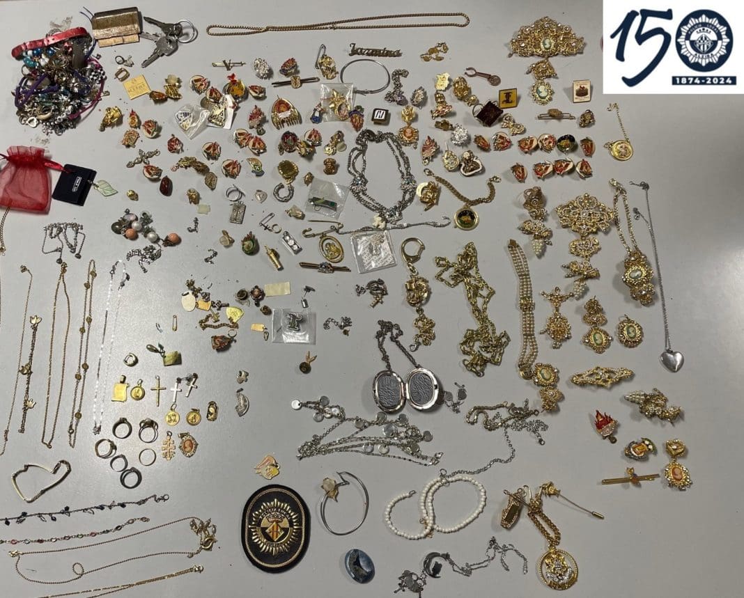 Se le intervino una bolsa y un neceser que contenían múltiples joyas y piezas de bisutería, por lo cual se empezó la búsqueda en unión otros agentes del lugar de donde podría haberlos sustraído. Contactaron con una patrulla de Policía Nacional que se dirigía a un presunto robo en domicilio y comprobaron que entre los efectos que llevaba el hombre se encontraba una fotografía de la propietaria de la vivienda. Por lo cual, se le detuvo por un presunto delito de robo con fuerza.