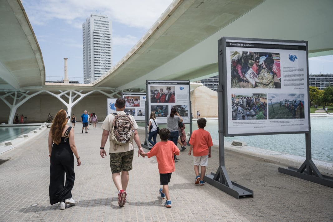 La exposición ‘La Paz empieza conmigo‘ llega a València para recorrer y mostrar, a través de una selección de imágenes, los 75 años de las misiones de paz de la Organización de las Naciones Unidas (ONU), así como su «evolución y reformulación» a lo largo de este tiempo, mediante la intervención en procesos políticos y de paz, protección de civiles, de infancia y mujeres, o para garantizar la seguridad y el estado de derecho.