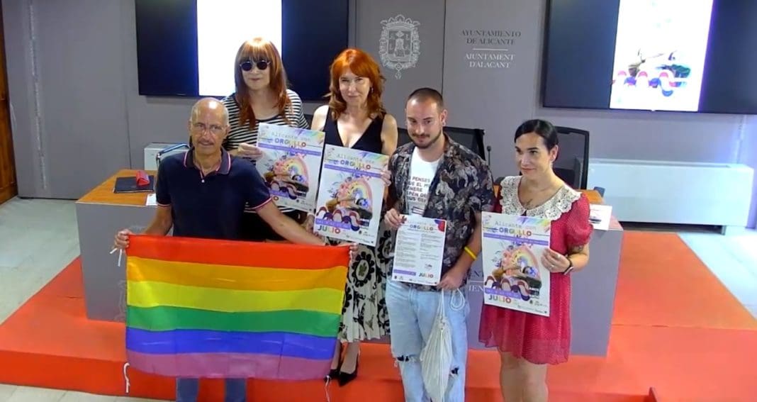 El vigésimo aniversario de la celebración del Orgullo LGTBI en Alicante este 2023 ha unido a las asociaciones que engloban al colectivo en la capital. El Ayuntamiento de Alicante ha presentado este lunes, 10 de julio, el cartel de la semana dedicada a visibilizar y reivindicar sus derechos momentos antes de presidir el acto institucional en el Salón Azul.