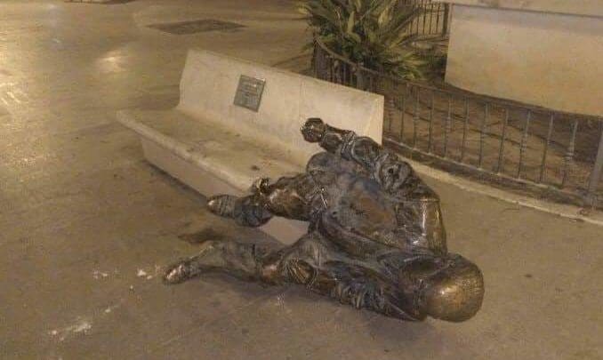 Els operaris municipals van retirar l’estàtua del terra i aquest matí ja ha sigut instal·lada de nou.