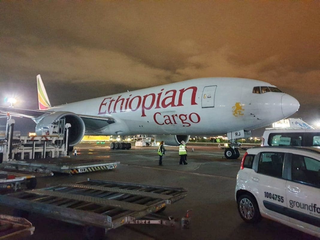 L’avió, un Boeing 777 de la companyia Ethiopian Càrrec, que va enlairar de Guangzhou i va arribar esta matinada a Madrid després de fer escala a Addis Abeba, transporta 2.572.400 màscares (d’elles, 30.000 FFP2), 66.000 equips de protecció individual (EPI), 170.000 ulleres i 20.000 termòmetres.