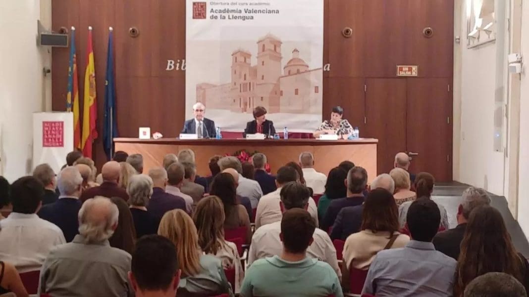 La presidenta de la Acadèmia Valenciana de la Llengua (AVL), Verònica Cantó, ha inaugurado este jueves el curso académico 2023-2024 acompañada de los académicos de la institución.