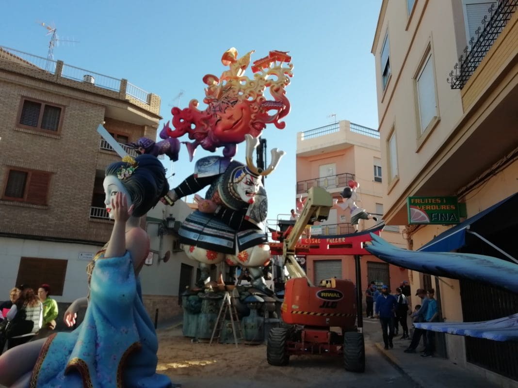 Si bé l’habitual sol ser visitar els monuments ja muntats, també resulta interessant veure com aquests s’alcen amb l’ajuda de les grues, creant màxima expectació a l’hora de col·locar les rematades més atrevides, així com veure als artistes fallers donant instruccions i retocs d’última hora perquè tot estiga perfecte.