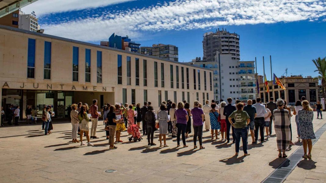El Ayuntamiento de Benidorm ha celebrado a las 13 horas de hoy una concentración silenciosa de cinco minutos en la Plaza SSMM Reyes de España para condenar el último crimen por violencia machista registrado el pasado 25 de septiembre en Benidorm tras el asesinato de una mujer de 67 años a manos de su marido.