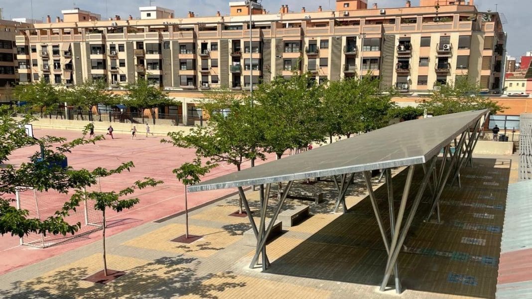 El colegio municipal de Benimaclet ya dispone de una pérgola fotovoltaica para su autoconsumo energético