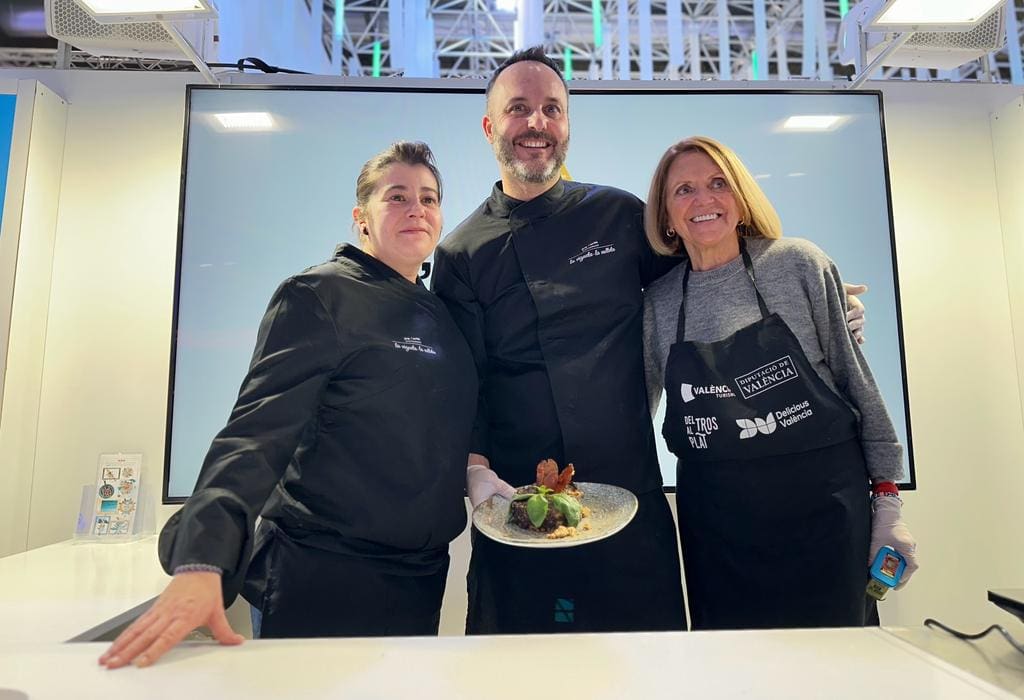 Es por ello, que Bétera ha sido uno de los municipios protagonistas en el stand de showcooking donde ha presentado Aroma d’Alfàbega, el plato del restaurante beterense La Volteta, nombre que también coincide con unos de los momentos clave de la fiesta del 15 de agosto. Esta receta de revuelto de morcilla, que combina vanguardia y tradición, ha sido cocinada por Patricia y Vicent Escribà, propietarios del restaurante, y quienes han asegurado que este aroma albahaca les pone la «piel de gallina» porque les recuerda al día grande de Bétera.