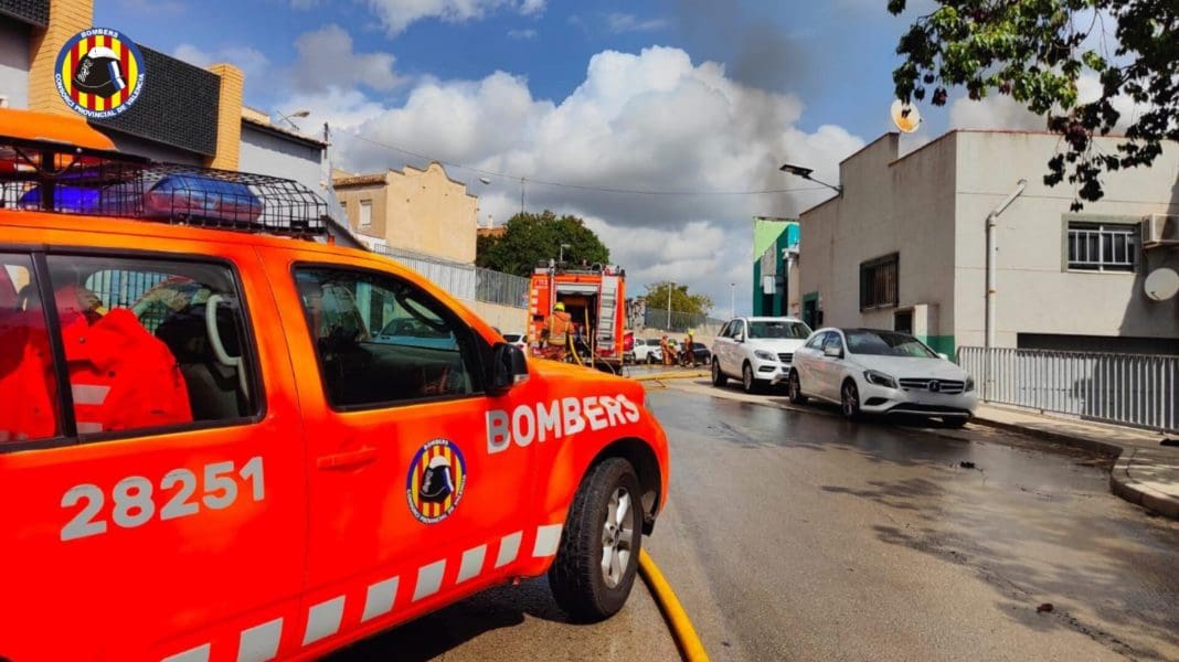 Un afectado por inhalación de humo en el incendio de un taller de pinturas en Manises