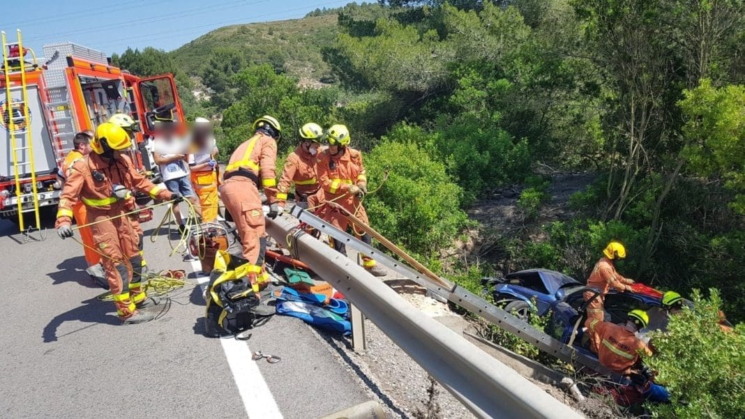 Així mateix, un cotxe es va eixir de la via en la CV-610 a Benigànim i bombers dels parcs de Xàtiva, Ontinyent, Alzira i el Grup Especial de Rescat a Altura van alliberar a una dona atrapada.