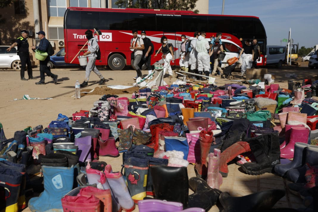 Trece días después de la Dana que asoló varias comarcas de Valencia, en uno de los accesos a Paiporta, uno de los pueblos más afectados por las inundaciones, se ha formado una gran ‘zapatería‘ en la que los voluntarios dejan las botas con las que han trabajado para que otros puedan hacer uso de ellas.