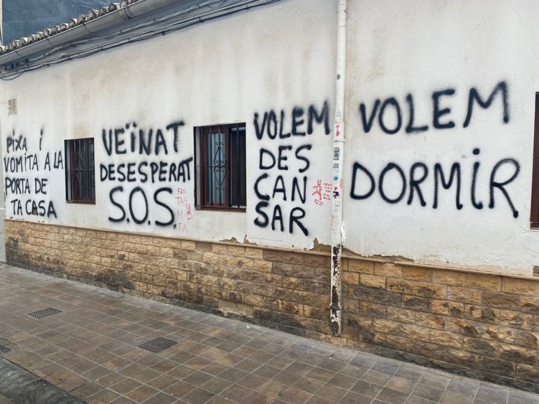 Catalá ha señalado que son muchos los vecinos de Plaza Honduras, Monteolivete, Marxalenes y Benimaclet que nos están trasladando su situación límite porque no pueden aguantar otro fin de semana sin poder descansar por culpa de los botellones. Prueba de ello son las pintadas con las que ha amanecido una casa de Benimaclet donde los vecinos gritan un SOS.