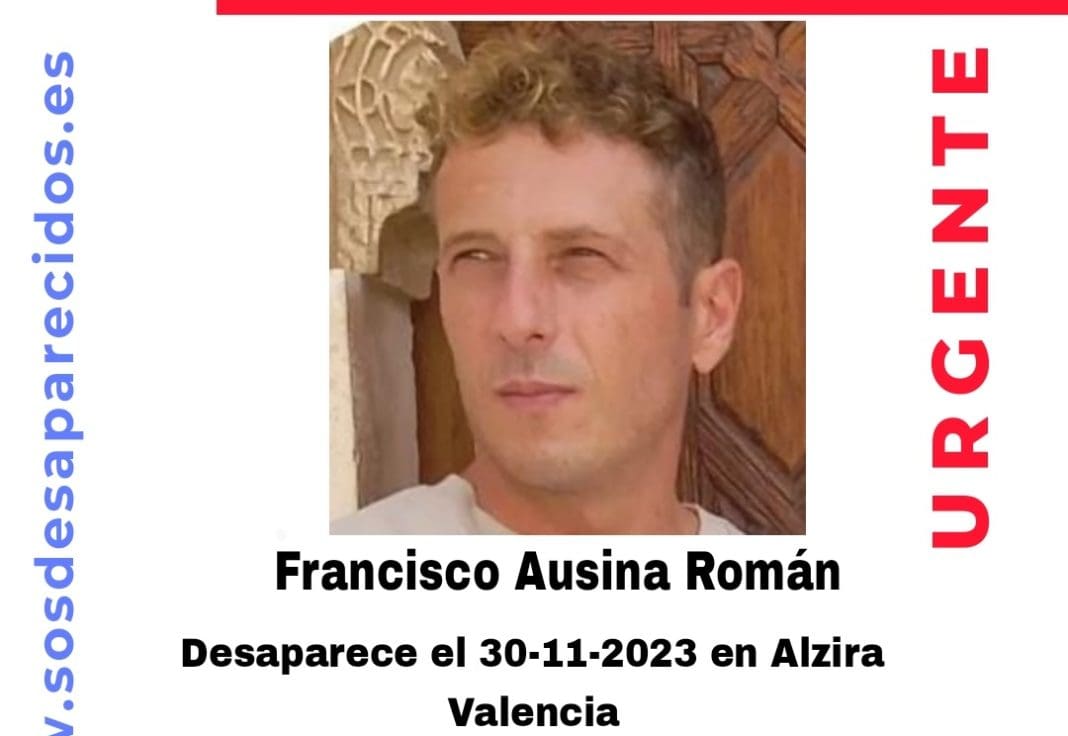 Francisco Ausina Román, un hombre de 45 años, desapareció este pasado 30 de noviembre en el municipio valenciano de Alzira. Así lo alerta la asociación SOSdesaparecidos a través de sus redes sociales.