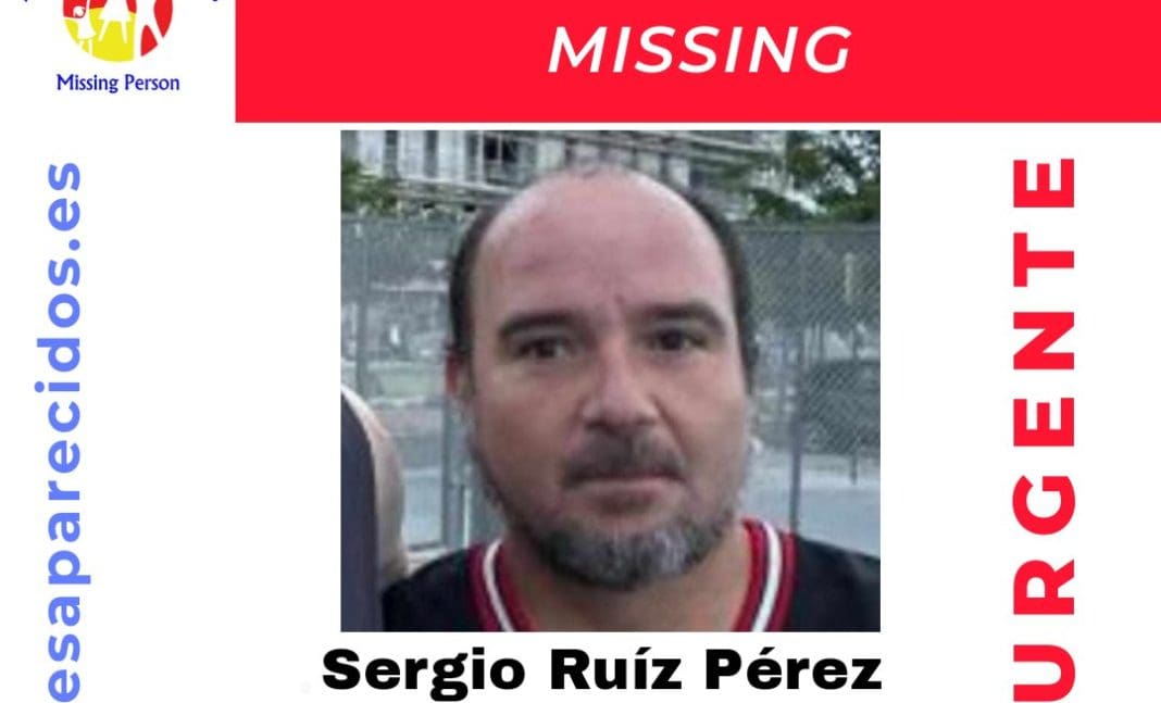 La asociación SOS Desaparecidos ha compartido la imagen de Sergio Ruíz Pérez, que mide 1,85 de altura, es de complexión normal, tiene calvicie parcial, los ojos marrones, lleva barba de varios días y, en el momento de la desaparición, le acompañaba un perro mastín cruzado con pastor belga de color marrón oscuro y negro.