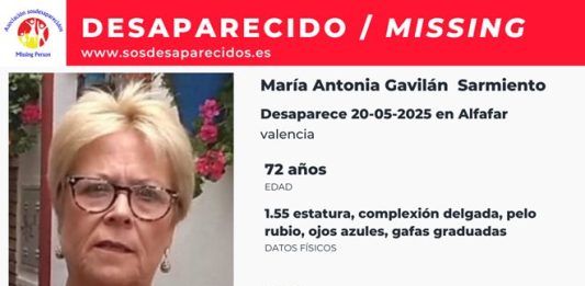 SOS Desaparecidos lanza una alerta para localizar a una mujer mayor en situación de alta vulnerabilidad desaparecida en este municipio valenciano el 20 de mayo