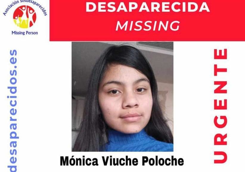 Mónica Viuche Poloche tiene 15 años, es de complexión normal, tiene el pelo largo y oscuro, los ojos marrones y, en el momento de la desaparición, llevaba un pantalón vaquero azul, unas zapatillas blancas (Fila) y una blusa roja.