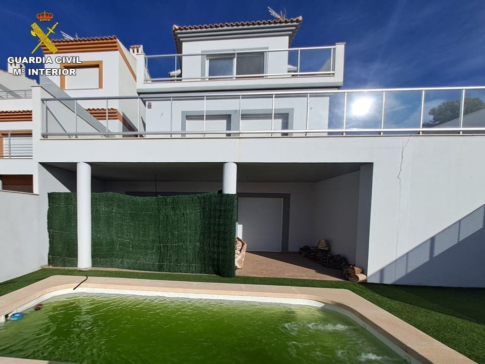Al tratarse de una urbanización de chalets adosados con piscina independientes, a los agentes, entre otras cosas, les llamó la atención como el resto de vecinos tenían las piscinas con agua con tratamiento con cloro, y sin embargo, la investigada no utilizaba ningún tipo de tratamiento, teniendo por lo tanto la misma un color diferente al resto, concretamente verdoso. Por ello, dedujeron que dicha piscina era utilizada como depósito de agua para el riego de la plantación ilegal.