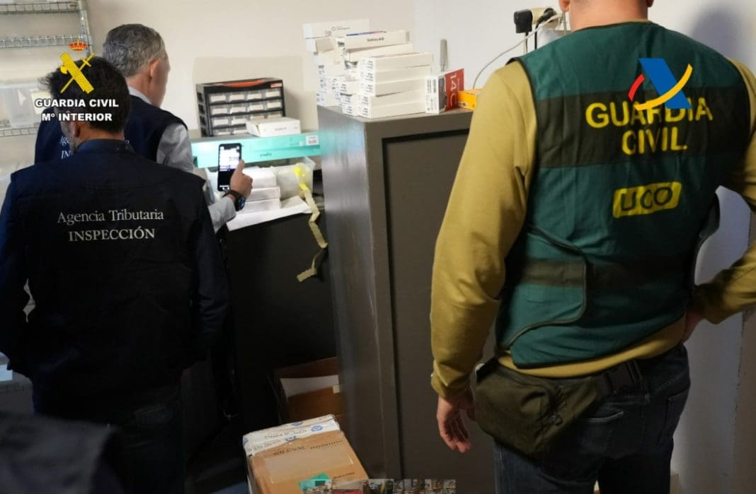 La Guardia Civil y la Agencia Tributaria, en el marco de la operación “Backmobile”, han desarticulado una organización criminal especializada en la defraudación del IVA en la comercialización de teléfonos móviles y otros dispositivos electrónicos. Han sido detenidas 15 personas, además de ser intervenidos 9.000 teléfonos móviles, más de 200.000 euros en efectivo, 35.500 dólares en ‘criptodivisas’ y 75 vehículos.