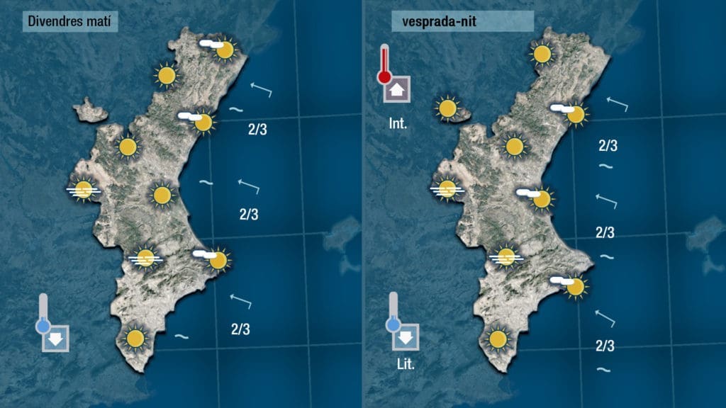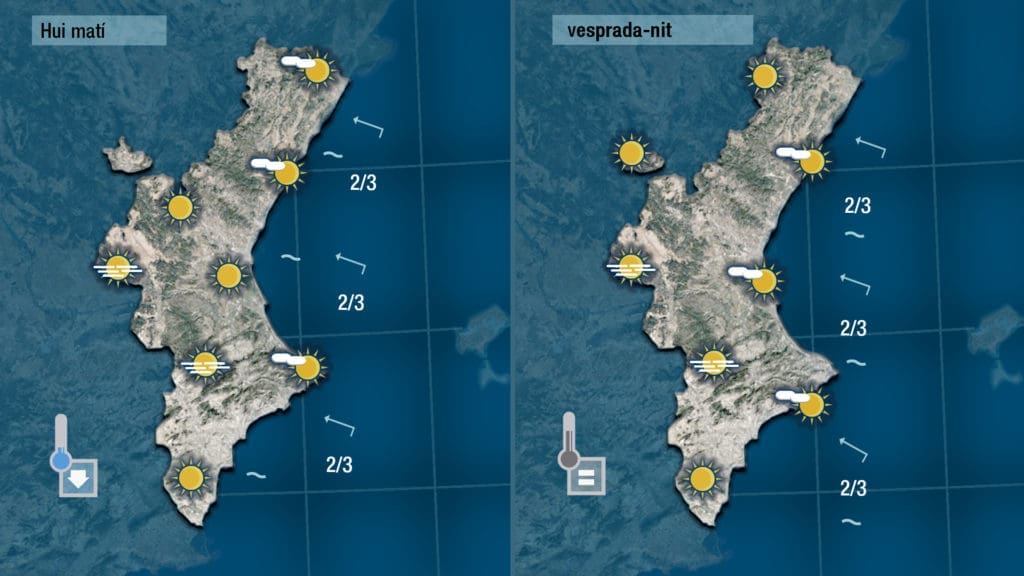 Daremos la bienvenida al nuevo año con sol, calma y estabilidad. Puede ser que tendremos que esperar a media mañana para que desaparezcan las nieblas y las nubes bajas que puedan haber a primera hora en las comarcas más costeras pero en el centro del día hará sol y las temperaturas no sufrirán cambios.