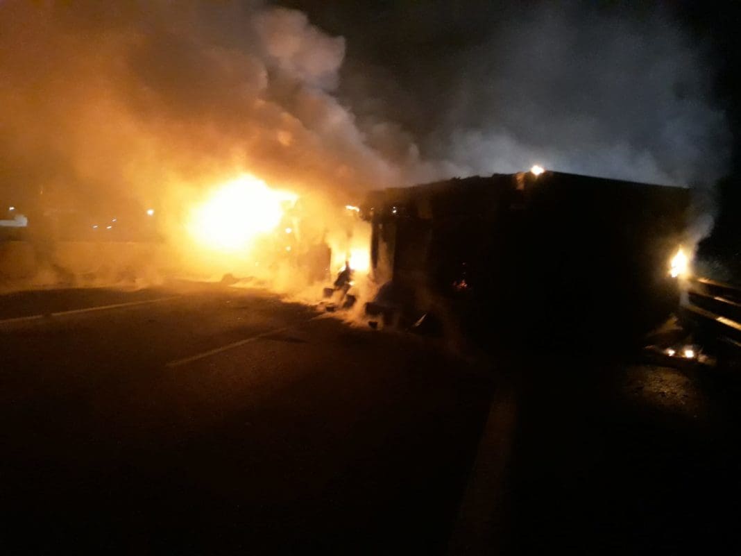 Segons fonts del Consorci de Bombers sobre les 3.39 hores es va rebre l’avís de l’accident del camió amb posterior incendi.