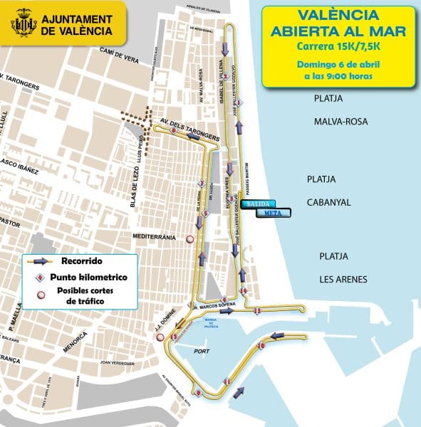 Tanto la salida como la meta están ubicadas en el Paseo Marítimo, a la altura de José Ballester Gozalvo número 27, con lo que no se producirán cortes al tráfico por el montaje o desmontaje de esta infraestructura.