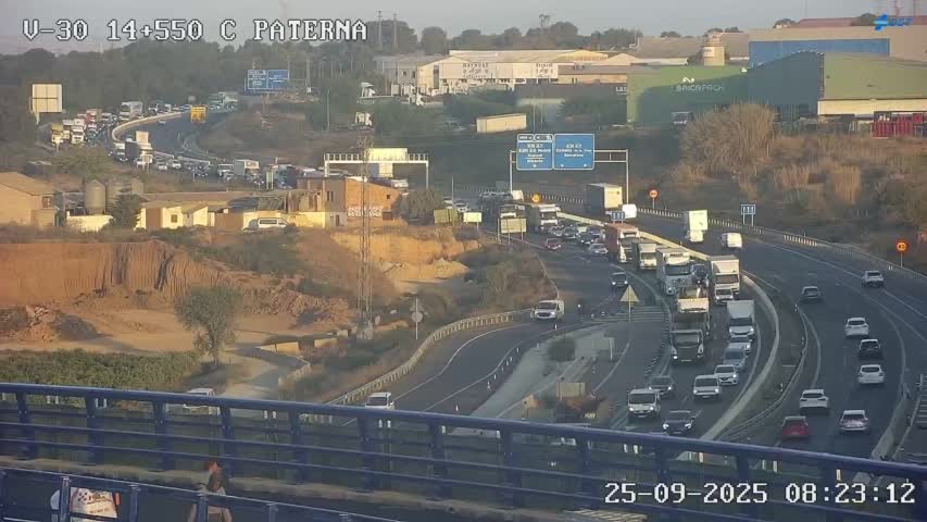 En la carretera A-3 de entrada a València también hay cinco kilómetros de retención; en la CV-30, la circunvalación norte de Valencia, tres kilómetros; y en la CV-365, entre Burjassot y Paterna, otros tres kilómetros de cola.