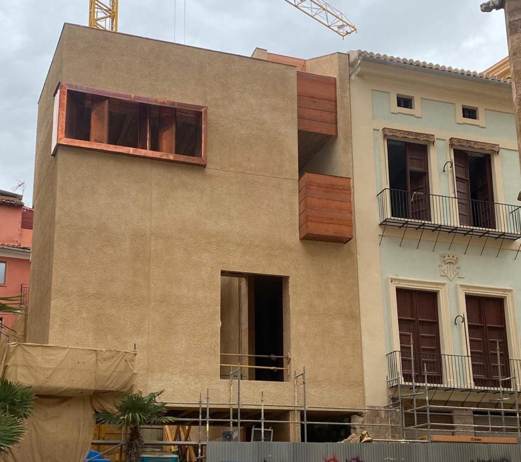 Las obras de rehabilitación de la Casa del Relojero, edificio emblemático junto al Micalet y la entrada de la Catedral, y la construcción del nuevo edificio en la misma parcela avanzan a buen ritmo y ya se han podido ver los primeros resultados de la fachada tras retirarse los andamios. Este espacio ha presentado durante décadas un estado de abandono y degradación en pleno centro histórico de la capital del Turia.