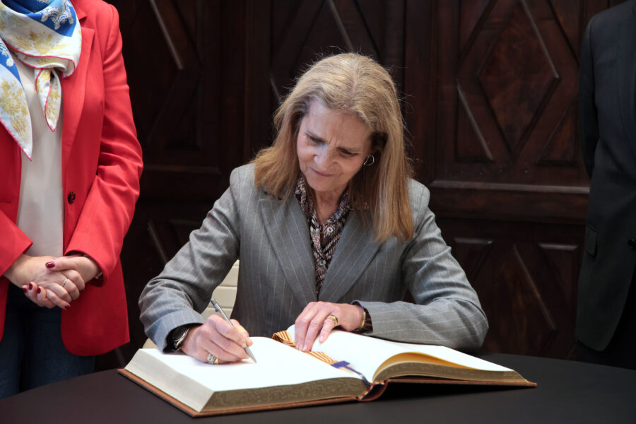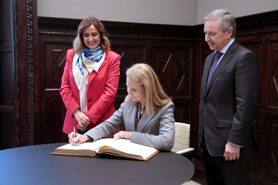 La infanta ha acudido al consistorio acompañada por el director regional de Mapfre València-Castellón, Ricardo Garzó Montagud. Durante su visita, ha firmado en el libro de honor del Ayuntamiento y ha agradecido la invitación cursada por el consistorio.