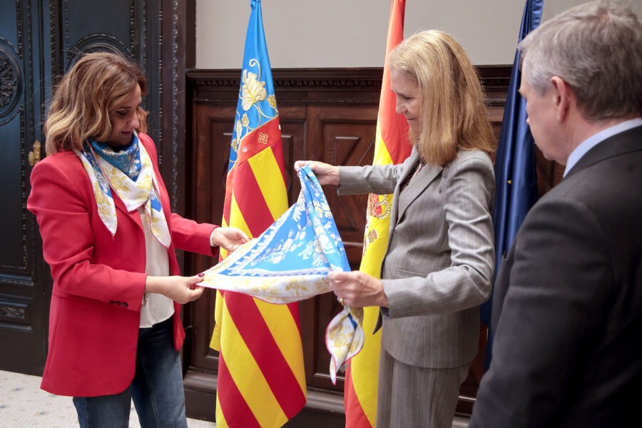 Catalá ha agradecido a la hermana del rey su respaldo a las tradiciones valencianas y a las Fallas, además de reconocer la labor que desarrolla en la entidad en la que trabaja, desde la que se han impulsado distintas iniciativas sociales tras la DANA.