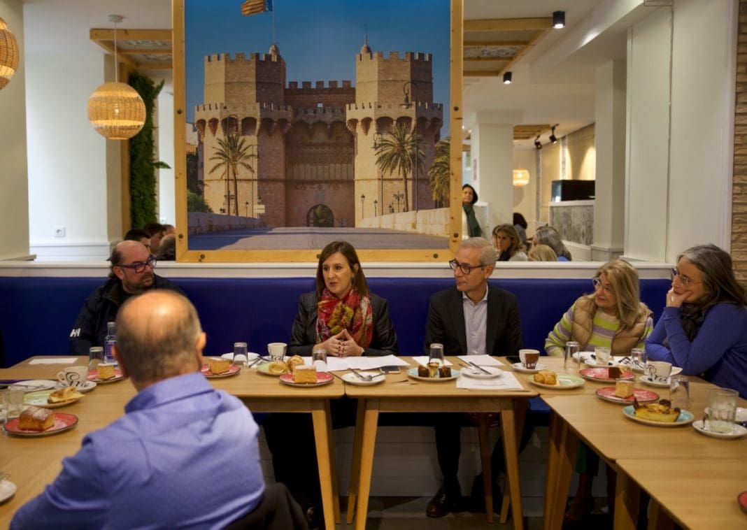 La portavoz del Partido Popular en el Ayuntamiento de Valencia, María José Catalá, se ha reunido esta mañana con comerciantes de diferentes barrios de la ciudad de Valencia para abordar la situación del sector y recoger sus propuestas e inquietudes ante un año difícil por la subida de costes energéticos.